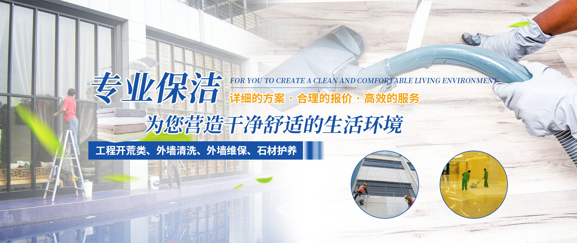 四川梓淇清潔服務有限公司,是一家從事物業管理,外墻清洗,外墻維保,綜合類開荒保潔企業公司。   專業從事物業管理、工程開荒類、外墻清洗、外墻維保、石材護養服務。公司有正規培訓、擁有專業的保潔隊伍;齊全的清潔設備;規范的作業流程;主動的服務意識。   秉承“環保、健康、科技、創新、專業”的服務理念,為您提供詳細的施工方案,合理的報價,高效的服務,全力為客戶創建一個綠色環保、清新的環境,我們的服務宗旨是:只要您一個電話,我們將為您營造一個干凈舒適的生活環境。